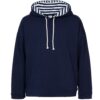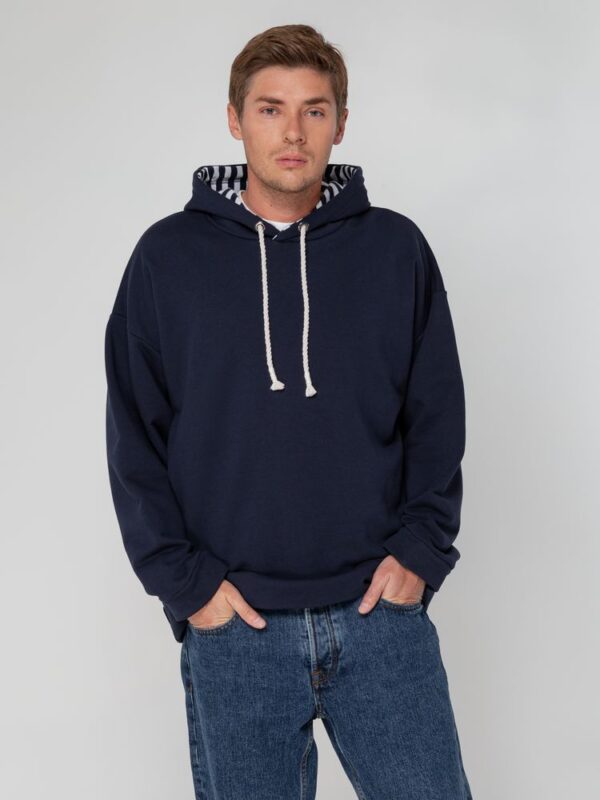 Морской стиль в одежде — это всегда особая атмосфера, пропитанная соленым воздухом, легким бризом и шумом волн. Худи Seamark подарит ощущение свободы и легкости. Его с удовольствием можно носить как в городе, так и во время отдыха на яхте, путешествия на круизном лайнере или плавания на парусной регате. Дополнительный шарм изделию придают хлопковый канат для регулировки капюшона и полосатая подкладка на капюшоне и в карманах. Худи унисекс в морском стиле со спущенным плечом и карманами в боковых швах.