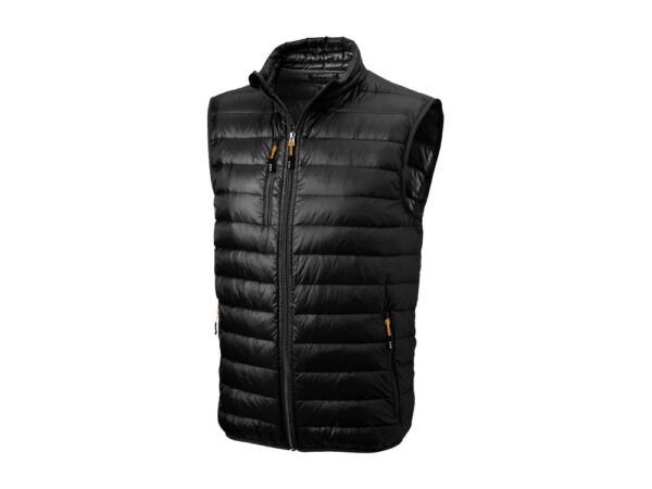 Пуховая жилетка Fairview. Стандартный покрой. Ткань не пропускает пух. Карманы для рук и нагрудный на молнии. Внутренний противоветровой клапан и защита подбородка. Эластичная обшивка внизу и на проймах. Ткань дышащая, ветронепроницаемая и влагоотталкивающая. Отражающий лого сзади. Ремешки на собачку (второй комплект в цвете антрацит). Жилет - версия победителя премии Reddot, куртки Scotia. Ткань из 100% нейлона с матовым и блестящим водоотталкивающим покрытием, 20D. 80% пух и 20% перо.
