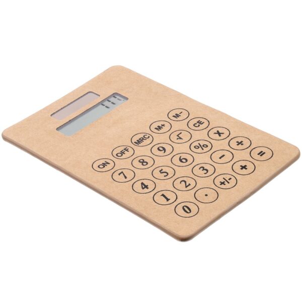 Компактный калькулятор из крафтового картона с крупными клавишами. Устройство работает от солнечной батареи и не требует элементов питания. Поставляется в коробке из картона.