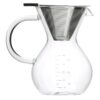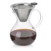 Большой объём позволяет заварить до 500 мл кофе за раз — это две стандартных порции. Жаропрочное боросиликатное стекло отлично переносит перепады температуры, а удобная ручка не нагревается, поэтому можно сразу разливать горячий напиток.