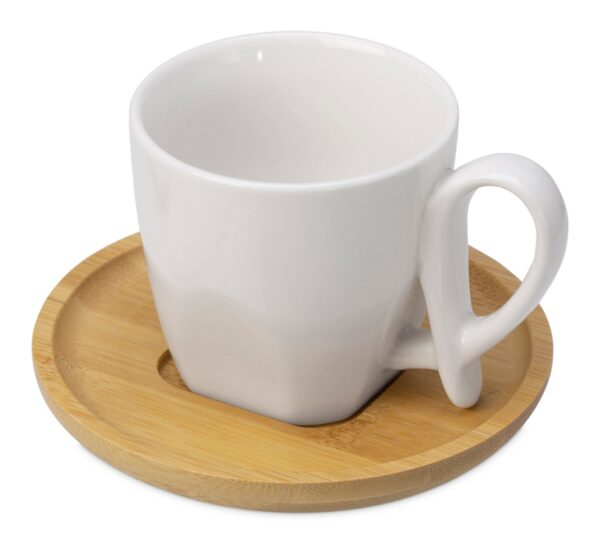 Бамбуковое блюдце имеет выемку для чашки, поэтому "Mandy" можно аккуратно разместить на столе, не занимая много места.