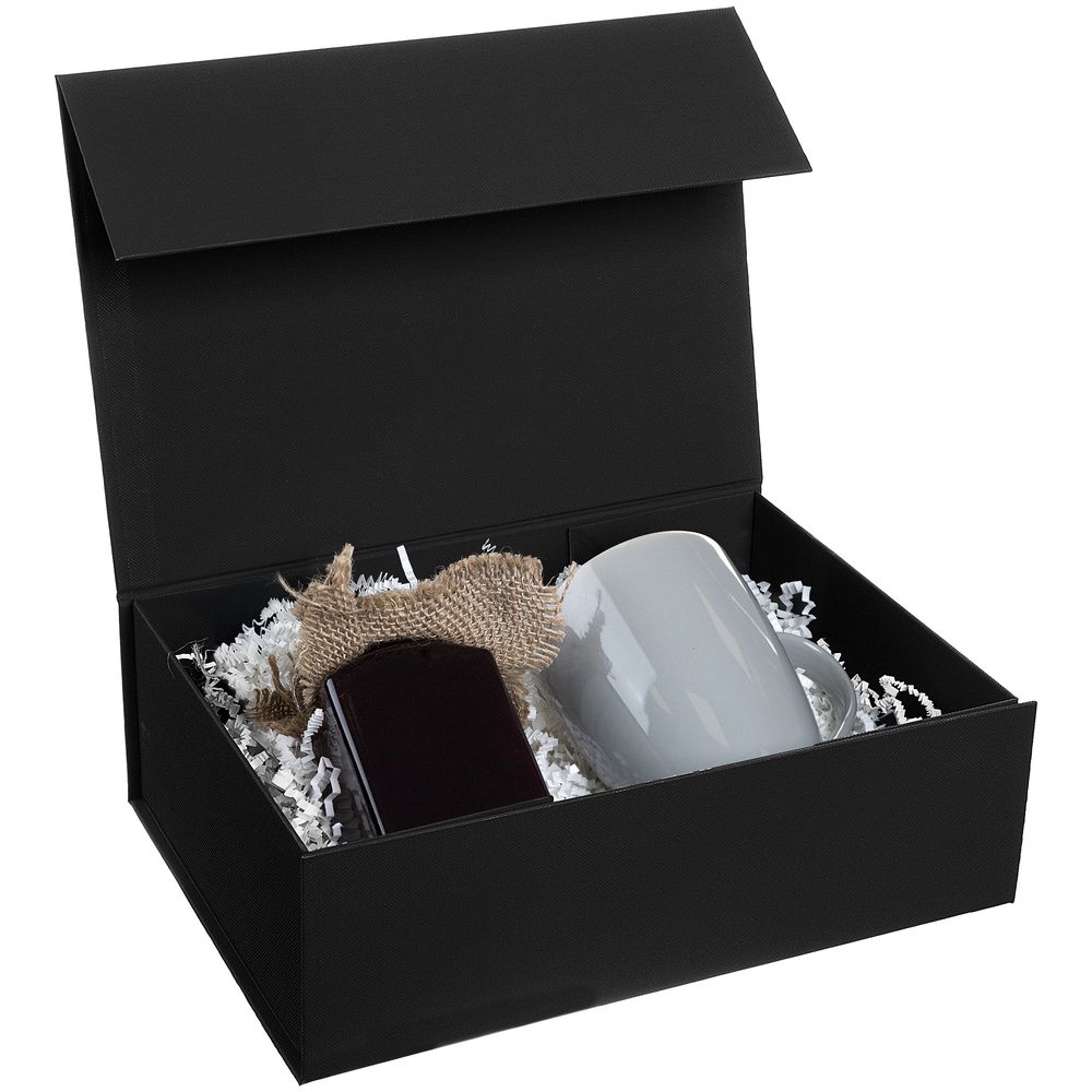 Коробка из переплетного картона, кашированного тисненой тонированной в массе бумагой, с крышкой на магните.