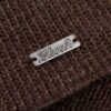 Металлический шильд с названием бренда расположен по нижнему краю изделия, что оставляет достаточно места для пришива лейбла или шильда с логотипом заказчика.