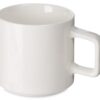Белая кружка из костяного фарфора с удобной квадратной ручкой — широкой, комфортной для хвата и необычной формы. Форма дна позволяет ставить кружки друг на друга для экономии места: зацепленные друг за друга, выступом донышка, они не соскользнут друг с друга, выстроенные в ровную башню.