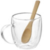 - Практичный комплект — кружка 250 мл, ложечка 13 см и удобная подставка 16×11,3 см.