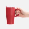 Эргономичная ручка удобно лежит в руке, а прозрачная крышка с отверстием для питья не дает содержимому разлиться на ходу или быстро остыть. Последнее особенно важно с учетом большого объема — 520 мл чая, кофе или какао хватит надолго.
