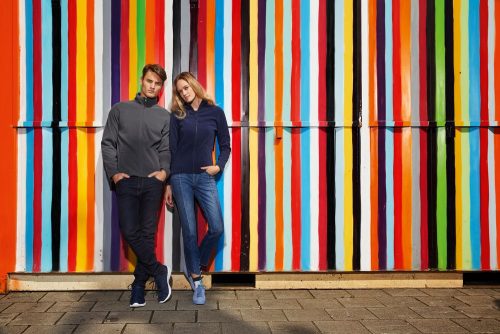 Молния в тон ткани, воротник-стойка, два кармана на молнии.
