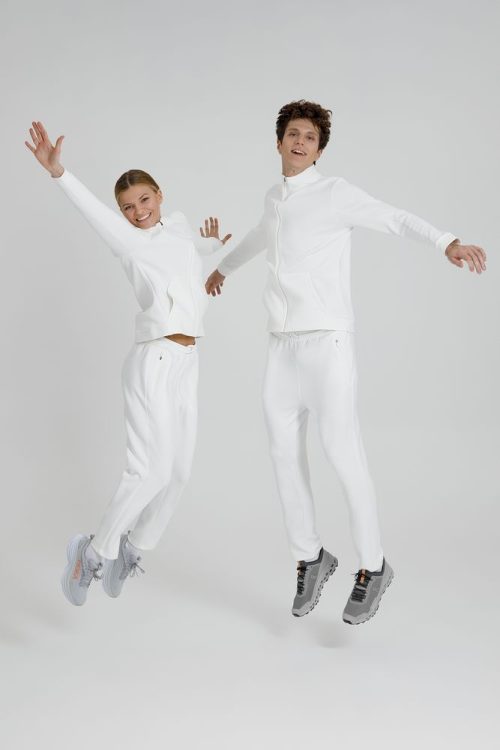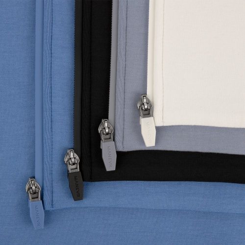 Коллекция текстиля Manevr Sport с продуманным анатомическим кроем выполнена из высокотехнологичного трехслойного материала, известного как ткань скуба или трикотажный неопрен, в самом центре которого спрятаны объемные нити текстурированного полиэстера.