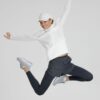 Такой «сэндвич» хорошо держит форму (а еще приятно пружинит под пальцами), но при этом остается легким и эластичным, не сковывает движений и отводит лишнюю влагу. Внутренняя ячеистая структура не препятствует воздушному обмену, позволяя коже «дышать», — а значит, больше никакого «эффекта парника» во время тренировки или активной прогулки.