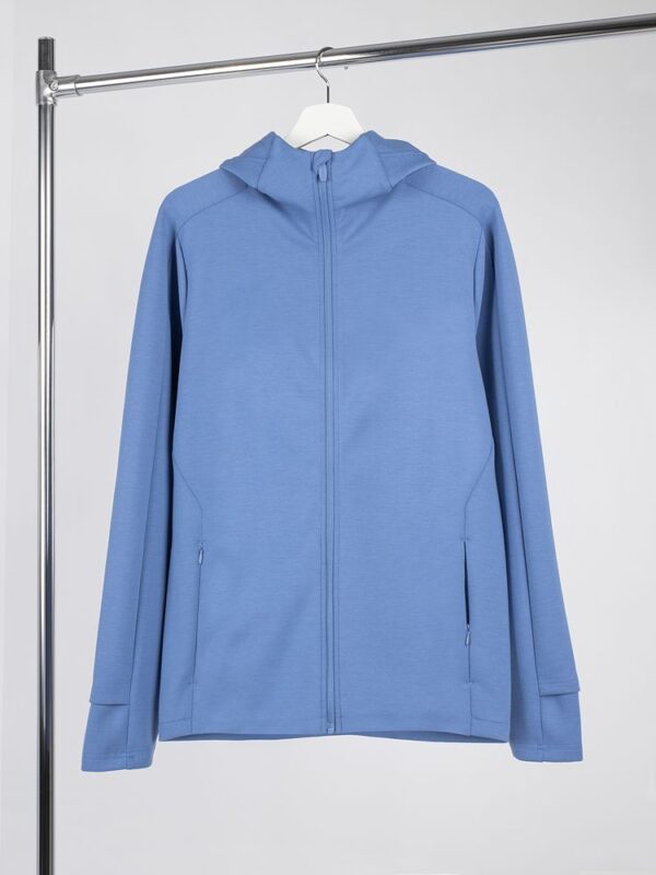 Два типа плетения создают одновременно и совершенно гладкую изнанку, и мягкую наружную поверхность, напоминающую бархатистый хлопок. Спортивная куртка с капюшоном Begi.