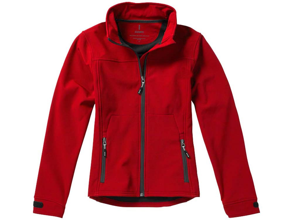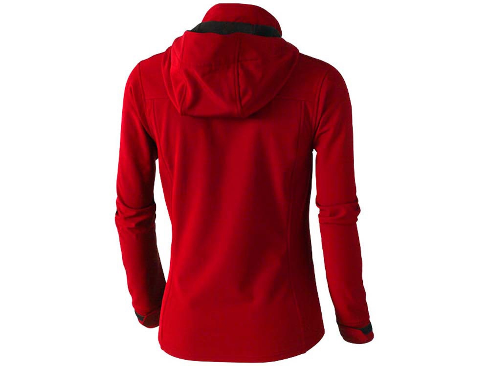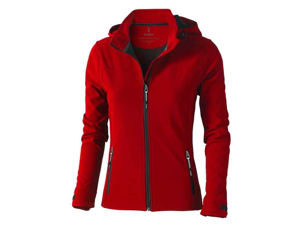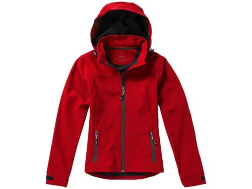 Женская куртка софтшел Langley. Стандартный покрой. Отстегивающийся капюшон на шнурках со стопперами. Обратная молния по центру и на карманах для рук. Регулируемые манжеты на липучках. Отражающий лого сзади. Водонепроницаемый 5000 мм. Дышащий 3000 мм. Ткань эластична в четырех направлениях. Ветронепроницаемая. Ремешки на собачку (второй комплект в цвете антрацит). Ткань из 90% полиэстера и 10% эластана, склеенного со 100% полиэстеровым микрофлисом. 300 г/м². Термотрансфер (1 цвет (цветные изделия)) на данный товар осуществляется бесплатно. Оплачивается только настройка оборудования в размере 9200 рублей на весь тираж.