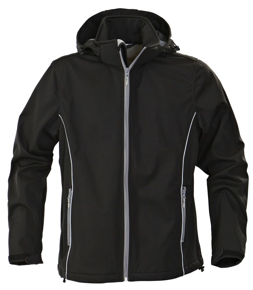 Капюшон отстегивается; по низу изделия и в капюшоне — утягивающий эластичный шнур. Светоотражающие элементы на передней части куртки и на капюшоне.