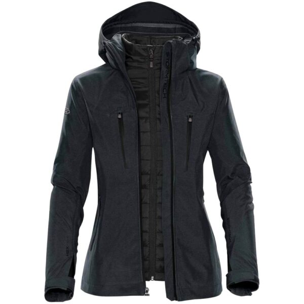 Ветровка из мембранной ткани H2Xtreme снаружи — дышит, но не пропускает влагу. Анатомический крой локтя обеспечивает максимальную свободу движений, а полностью проклеенные швы создают водозащитную капсулу. Внутренний слой — куртка с утеплителем — обладает надежной теплозащитой и удобно крепится к ветровке с помощью молний.
