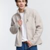 Куртка унисекс из фактурной искусственной шерпы с гладкой отделкой из таслана.