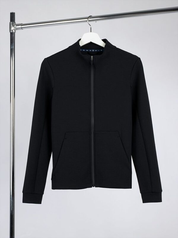 Два типа плетения одновременно создают и совершенно гладкую изнанку, и мягкую наружную поверхность, тактильно напоминающую бархатистый хлопок. Спортивная женская куртка Lovi.