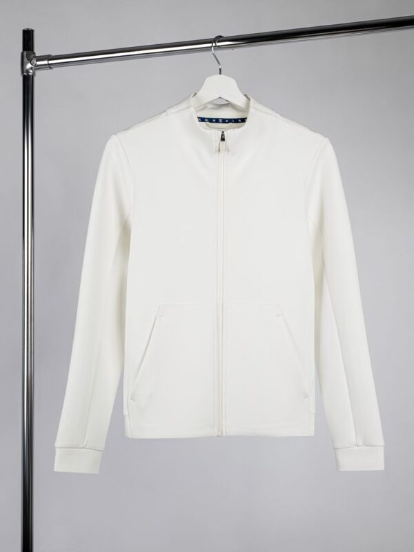 Два типа плетения одновременно создают и совершенно гладкую изнанку, и мягкую наружную поверхность, тактильно напоминающую бархатистый хлопок. Спортивная женская куртка Lovi.