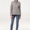 Легкая стеганая куртка облегающего кроя на молнии с воротником-стойкой.