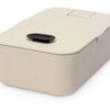 Чтобы облегчить открытие контейнера, сначала выпустите воздух из него, потянув за силиконовый клапан на крышке. Деталь для фиксации крышки контейнера выполняет дополнительную функцию подставки для телефона, что особенно понравится тем, кто привык смотреть видео или читать книги во время перекуса.