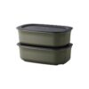 Два контейнера объёмом по 300 мл предназначены для хранения основных блюд, закусок, салатов, гарниров и десертов. Для удобства открывания контейнера на крышке с двух противоположных стороны предусмотрены специальные выступы. В комплект входит съёмная перегородка, которая позволяет разделить один из контейнеров на две части – для двух различных блюд. Эти контейнеры подходят для разогрева пищи в микроволновке (с открытой крышкой) и для хранения продуктов в холодильнике.