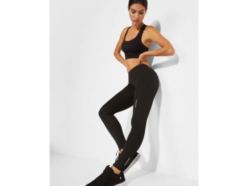 Длинные женские легинсы из технологичной ткани, с эластичным поясом с внутренним шнурком для регулировки. Светоотражающие детали. Внутренний карман спереди. Эластичная ткань, которая легко адаптируется к телу.