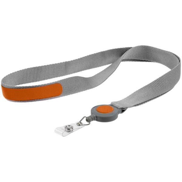 Лента для бейджа с ретрактором Devon, серая с оранжевым