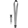 Лента для бейджа или пропуска с карабином и межъярусным замком. Такой замок позволит быстро отстегнуть часть ленты, чтобы приложить интерактивный бейдж или пропуск к считывателю, не снимая ленту через голову.