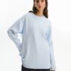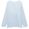 Siluetti. Силуэты уверенного будущего. Лонгслив Fuori средней плотности с широким воротом, спущенной линией плеча и свободно подворачивающимися краями по низу, на рукавах и вороте, которые добавляют модели еще большей расслабленности. Прозрачная бирка с логотипом бренда на рукаве не нарушает минималистичности образа.