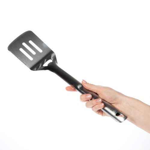 Лопатка Grillo предназначена для переворачивания продуктов на гриле, мангале или жаровне. Прорези позволяют стекать излишкам масла, соуса или жидкостей. Зубчатый край поможет разрезать большие куски при подаче, а встроенная открывашка — не остаться без прохладительного напитка. Имеет оптимальную для безопасного использования длину и отверстие, позволяющее удобно подвесить прибор на крючок.