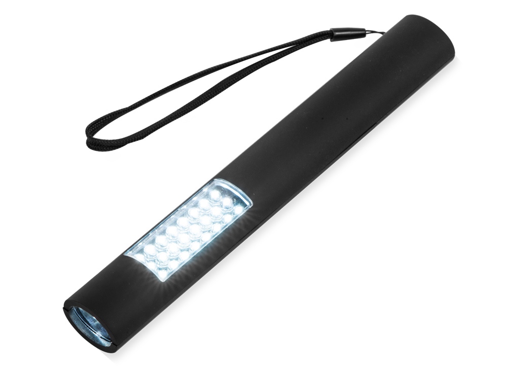 Стильный магнитный фонарик с тремя режимами. Первый режим – 4 осветительных светодиода, второй режим – 24 осветительных светодиода, третий режим – одновременное включения первых двух режимов. Магнитная задняя сторона для удобного хранения или для крепления к металлическим поверхностям во время использования. Кнопка включения/выключения. Нейлоновый ремешок для переноски.