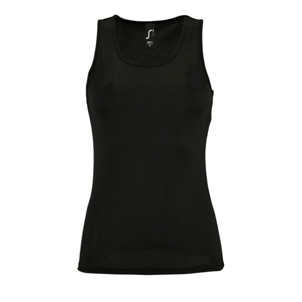 Майка приталенного кроя из спортивной сетки. Горловина и проймы обработаны бейкой.