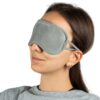 Маска для глаз из полиэстера позволит расслабиться и насладиться здоровым освежающим сном даже во время длительного перелета. Отсутствие солнечного света благотворно сказывается на качестве сна, поэтому маску можно использовать и вне путешествий, в собственной спальне, чтобы лучше выспаться. Мягкая резинка не давит на голову и в то же время не сползает, а вставка из материала с эффектом памяти помогает маске комфортно разместиться на голове.