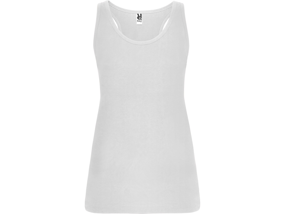 Майка узкого силуэта, горловина и проймы обработаны рибом. Спортивная спинка, боковые швы.
