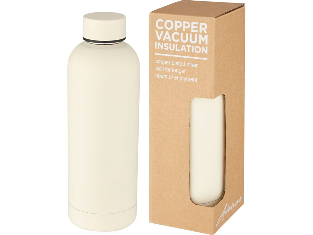 Нержавеющая медная бутылка с вакуумной изоляцией и простым дизайном. Изолированная конструкция из нержавеющей стали 18/8 предотвращает образование конденсата на внешней стороне бутылки, а модная финишная отделка порошковым напылением делает ее чрезвычайно прочной. Не содержит БФА, испытана и одобрена в соответствии с немецким законодательством о безопасности пищевых продуктов (LFGB). Проверена на содержание фталатов и одобрена для использования в соответствии с правилами REACH. Объем 500 мл. Рекомендуется мыть вручную. В коробке из переработанного картона.