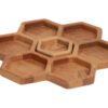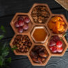 Менажница выполнена в виде семи сот для разных видов закусок — за бонусную дополнительную отвечает съемная сота-соусница, в которую можно залить мед или любимый соус.