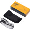 Складной нож Scopus от roq выполнен в ассиметричном необычном дизайне, в его составе — среднего размера нож, пассатижи, плоская и крестовая отвертки (биты), шестигранный ключ 5 мм.