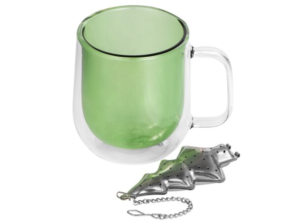 Кружка с внутренней цветной колбой дополнена ситечком, которое позволит сразу же заварить чай. Удобная ручка и двойные стенки не дают обжечь ладони во время чаепития.