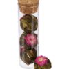 - связанный зеленый чай с цветами «Нефритовый Лотос» (состав: зеленый чай сенча, цветы хризантемы), вес 25 г — благодаря особой технологии скрутки чай, словно цветок, распускается в чайнике или чашке, при заваривании рекомендуем использовать прозрачную стеклянную посуду;
