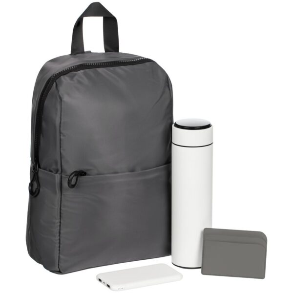 Набор City Therm — идеальный баланс комфорта и мобильности. Все самое необходимое для насыщенных городских будней и небольших поездок. Объем рюкзака 8 литров. Емкость бутылки 500 мл. Емкость аккумулятора 5 000 мАч.
