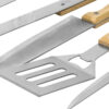 Благодаря длинным ручкам из каучукового дерева лопатку, ножи и щипцы удобно держать, не боясь горячих брызг при готовке. Деревянные ручки не нагреваются, что особенно ценно во время BBQ.