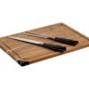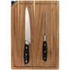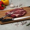 Доска с желобком, нож-слайсер для нарезки ломтиками и разделочная вилка — отличный подарок для человека, любящего готовить и красиво подавать на стол мясо, птицу или рыбу.