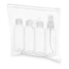 Флакончики объёмом 80 мл подойдут для шампуня, геля для душа и других косметических средств, один флакон оснащён распылителем. Бутылочки упакованы в прозрачный непромокаемый пакет на zip-lock застёжке, который дополнительно защищает багаж.