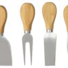 Листовидный нож или, как его еще называют, нож для пармезана, предназначен для твердых сортов сыра, которые практически невозможно порезать, скорее их нужно колоть. Нож-стамеска предназначен для очень мягких сыров, а широкая лопатка — для мягких и полутвердых. Двузубая вилка используется для сервировки, а также помогает при нарезании.
