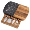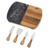 Этот роскошный набор для сыра идеально подходит на роль подарка для любого торжественного случая. Набор изготовлен из черного мрамора и акации: каменная вставка на крышке выполняет не только декоративную, но и практическую функцию, ведь на ней очень удобно резать и раскладывать сыр. Инструменты для резки сыра хранятся в выдвижном ящике под крышкой, для каждого из приспособлений предусмотрена своя вырубленная ниша. Из-за особенностей материала возможны вариации рисунка мрамора и дерева, что может отразиться на выгравированном изображении.