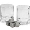 Перед использованием вымойте камни под проточной водой, чтобы удалить с них пыль или другие загрязнения, высушите полотенцем и поместите камни в морозильную камеру на пару часов, а затем используйте вместо льда для охлаждения напитков, чтобы получить неразбавленный холодный виски. В комплекте : два бокала для виски, 6 камней из талькохлорита, бархатный мешочек.