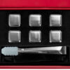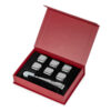 Набор для виски "Skye" состоит из шести охлаждающих камней из нержавеющей стали, бархатистого мешочка и удобных щипцов. Сет упакован в качественную коробку с магнитной крышкой винного цвета, а сверху надевается шубер с полиграфией, который можно заменить на какой-либо другой.