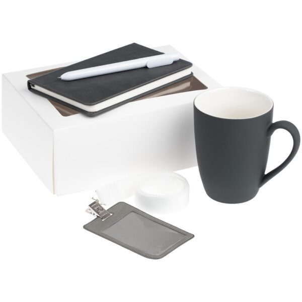 Лаконичный приветственный набор Hop In содержит все самое необходимое для успешной и быстрой адаптации нового сотрудника в команде. Это основные офисные принадлежности — блокнот и ручка — для подробной записи идей и планов; чехол для пропуска на ленте — для безопасности и идентификации; компактная кружка — для приятного перерыва в компании с новыми коллегами.