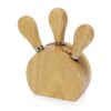 Набор состоит из ножей для сыра, подставки и удобной крафт-коробки. Кухонные инструменты выполнены из надежного каучукового дерева. Оно устойчиво к воздействию влаги, перепадам температуры и большим нагрузкам. Приборы устанавливаются в удобную деревянную подставку, где их можно хранить после использования. В комплект входят: