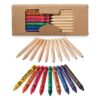 Набор из 19 карандашей. 9 цветных восковых карандашей и 10 цветных карандашей в картонной коробке с пластиковым окошком. Нанесение не предлагается на отдельные элементы набора. Картон.