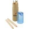 Набор содержит 6 цветных карандашей и футляр с крышкой-точилкой. Отличный вариант для создания оригинального промосувенира. Крышка позволит аккуратно собрать стружку в процессе подтачивания карандашей.