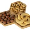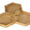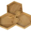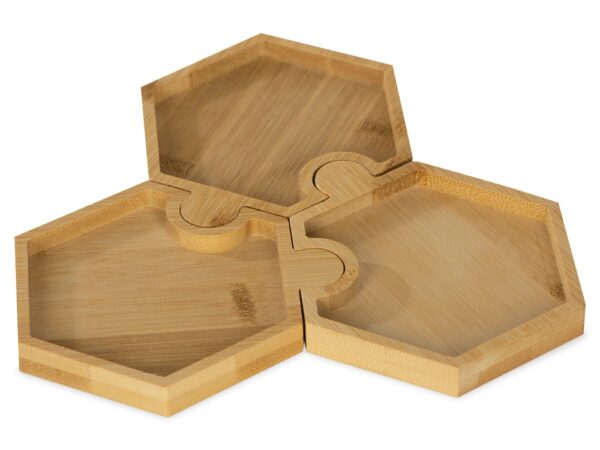 Три шестиугольных менажницы из бамбука могут использоваться как по отдельности, так и вместе, что особенно удобно при сервировке стола. Менажницы соединяются друг с другом пазами без применения каких-либо дополнительных средств.